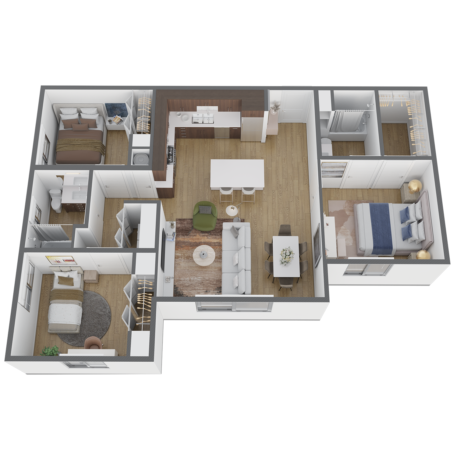 THE MAX offers spacious ONE, TWO, & THREE bedroom apartment homes.